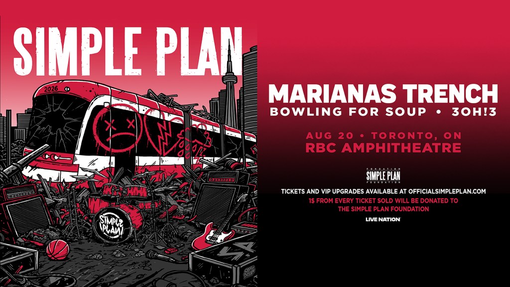 (TORONTO, ON – FEBRUARY 10, 2026) – Multi-platinum rock band Simple Plan have announced an all-new show at RBC Amphitheatre in Toronto this summer season, bringing their energetic pop punk sound to the city’s premier outdoor venue on Thursday, August 20th. The Toronto show will feature a reunion with long time friends Marianas Trench as well as 3OH!3 and Bowling for Soup as the supporting acts.