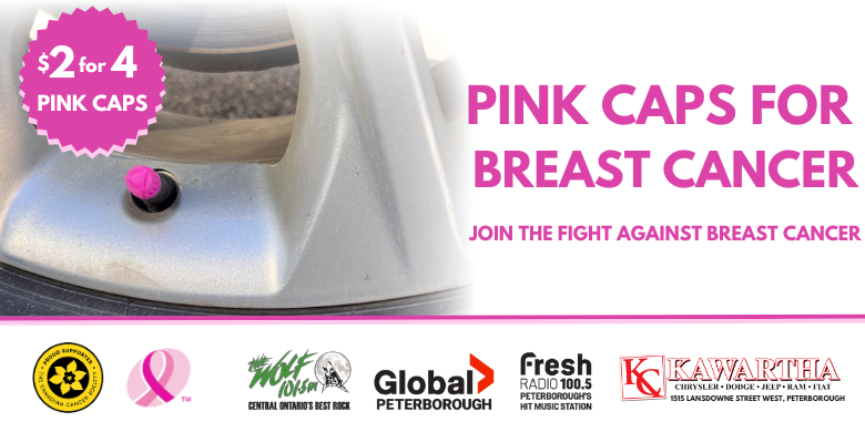 101.5 The Wolf, Global Peterborough, 100.5 Fresh Radio and Kawartha Chrysler are teaming up for Peterborough’s annual Pink Caps For Cancer fundraising campaign in support of the Canadian Cancer Society.